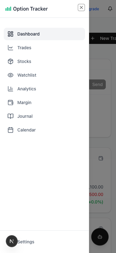Option Tracker features an intuitive navigation system designed to help you move quickly between sections while keeping your workspace uncluttered.