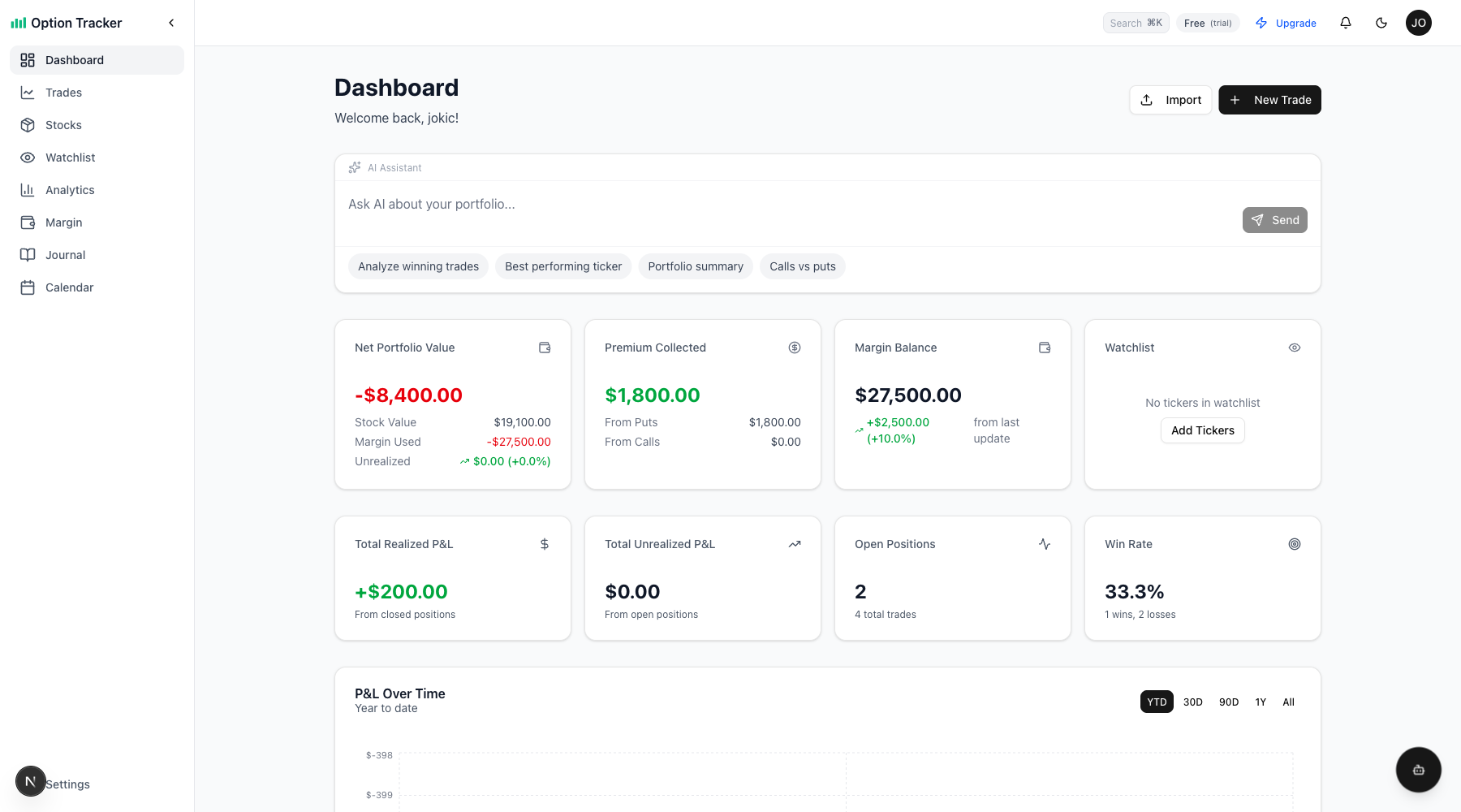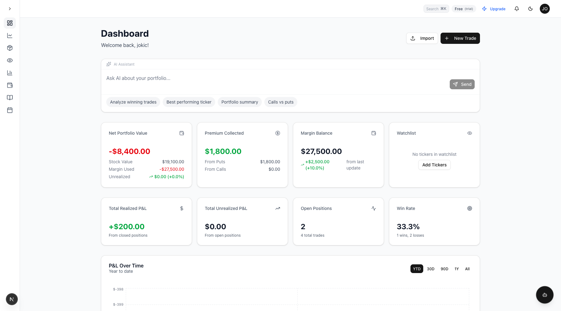 - Dashboard - Your trading command center with portfolio overview