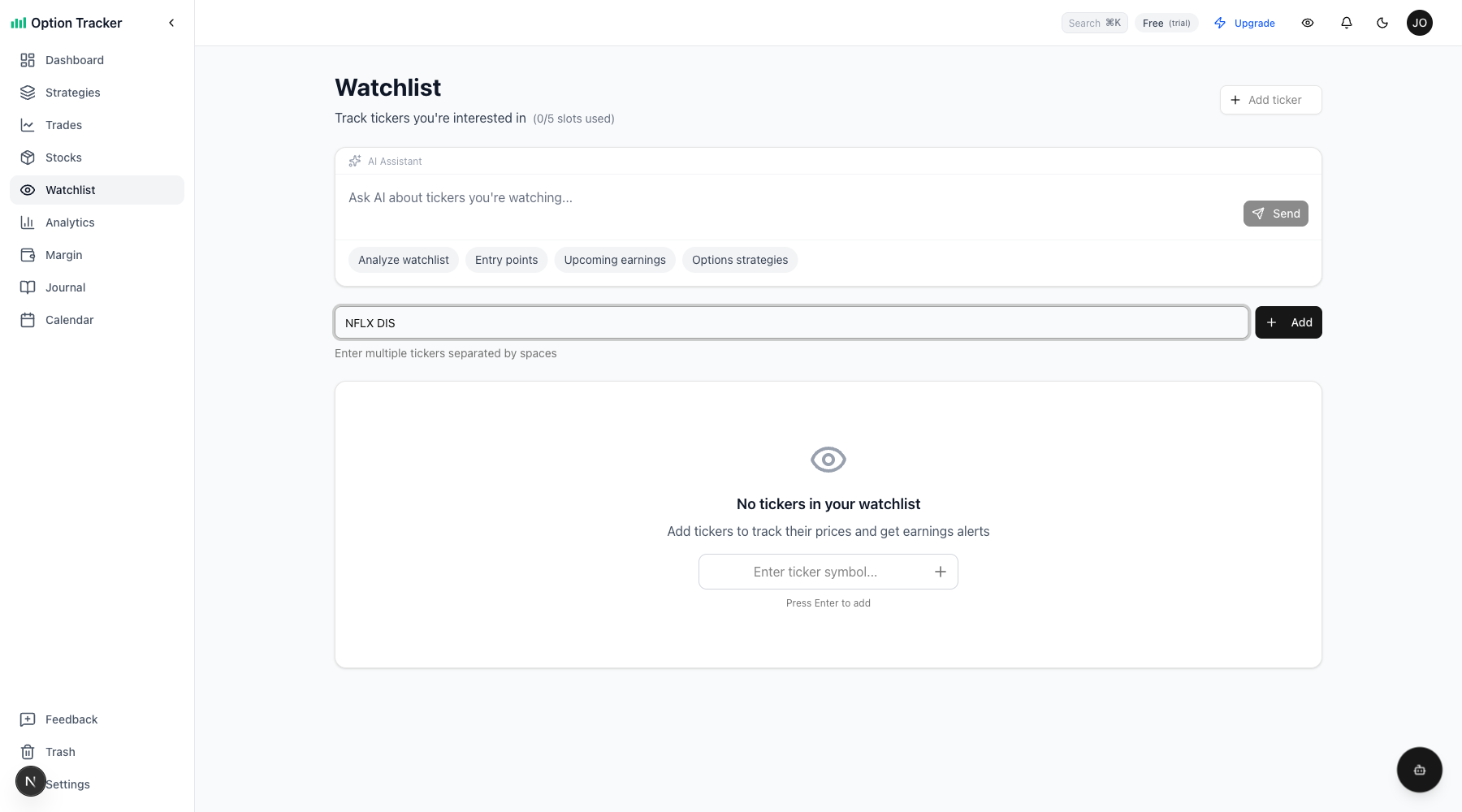 - Add a ticker to your watchlist